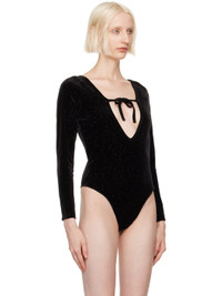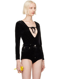 Stretch polyester velvet bodysuit. Crystal-cut detailing throughout. · Self-tie strap at plunging V-neck · Press-stud fastening at bottom · Fully lined Supplier color: Black Body: 92% polyester, 8% spandex. Lining: 94% polyester, 6% spandex. Made in South Korea 242252F358000