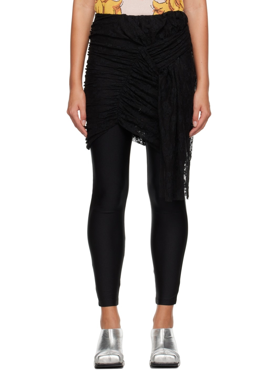 Stretch nylon lace skirt. Ruching throughout. · Layered and wrap construction · Elasticized waistband · Stretch nylon jersey leggings-style underlay Supplier color: Black Body 1: 90% nylon, 10% spandex. Body 2: 80% nylon, 20% spandex. Made in South Korea 232252F090005