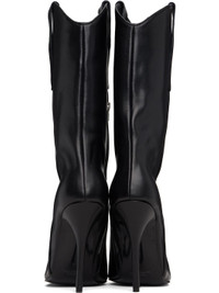 Mid-calf buffed leather boots. · Pointed toe · Pull-loops at collar · Zip closure at inner side · Covered stiletto heel with rubber injection · Leather sole · Heel: H4.5" Supplier color: Black Upper: leather. Sole: leather, rubber. Made in South Korea 252252F122001
