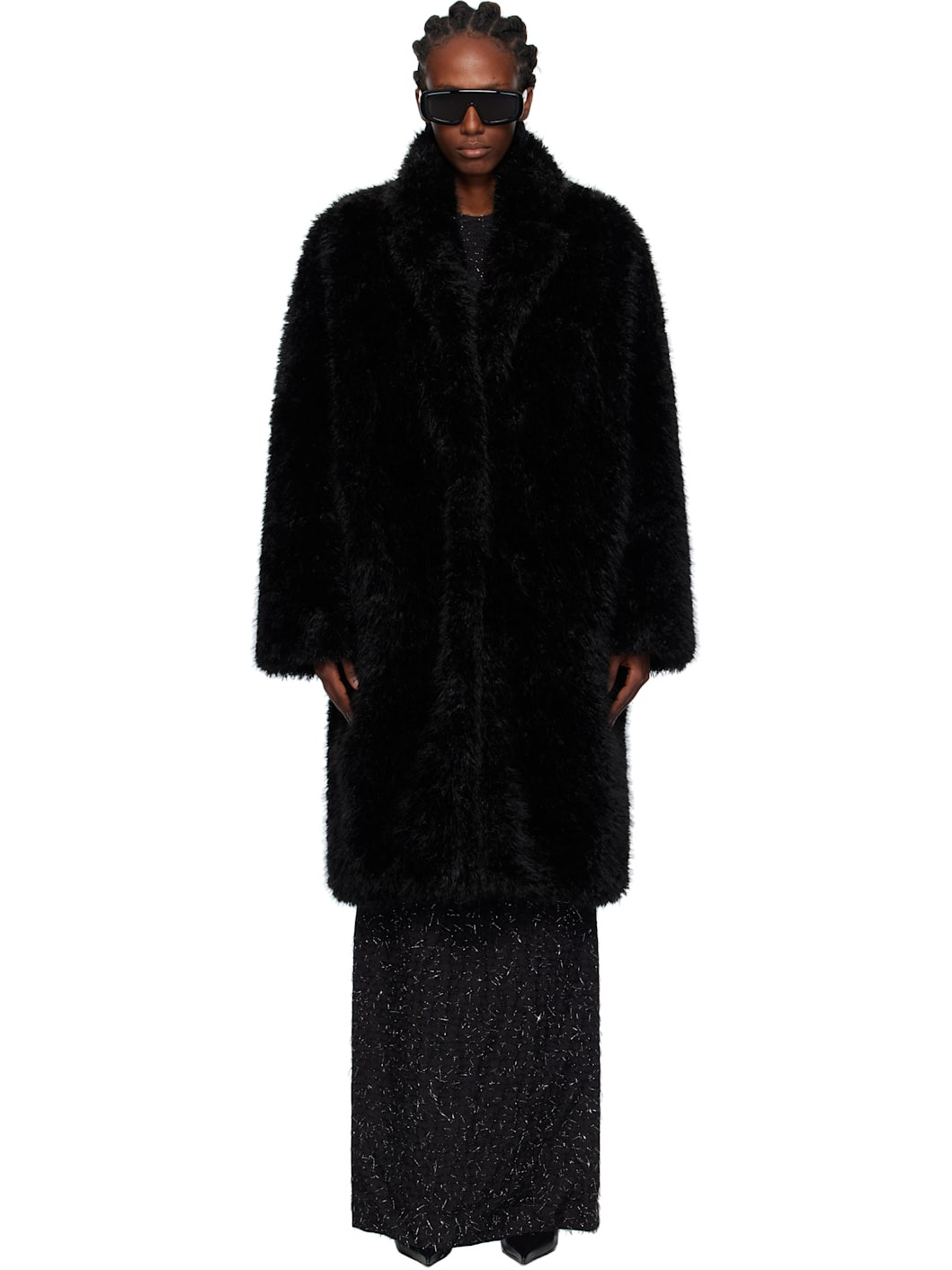 Black Notched Lapel Faux-Fur Coat
