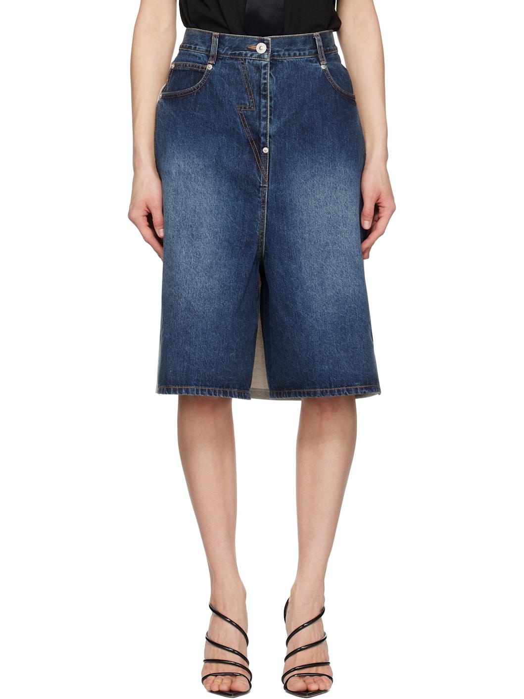 Non-stretch denim and French terry skort. · Paneled construction · Belt loops · Three-pocket styling · Zip-fly · Central vent at hem · Drawstring at elasticized back waistband · Integrated briefs underlay · Logo-engraved silver-tone hardware · Contrast stitching in tan Supplier color: Dark blue Body 1: 100% cotton. Body 2: 100% cotton. Made in South Korea 251252F088013