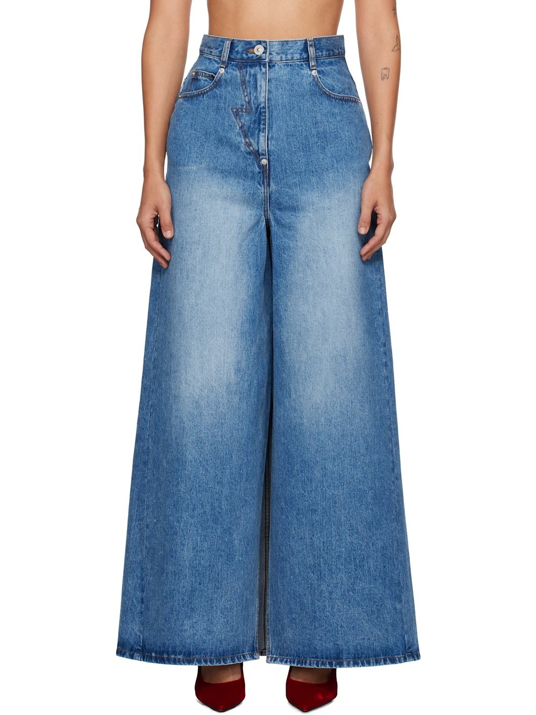 Blue Wide Denim Maxi Skort
