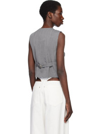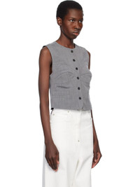 Wool delaine vest. · Paneled construction · Round neck · Button closure · Padded cups · Welt pockets · Cinch strap at back · Full satin lining Supplier color: Grey Body: 100% wool. Lining: 100% cupro. Made in South Korea 251252F099002