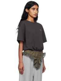 Cotton jersey T-shirt. · Crewneck · Text printed at chest · Lace and ruffled trim at elasticized hem · Button fastening at back collar Supplier color: Dgr Body: 100% cotton. Trim 1: 97% nylon, 3% spandex. Trim 2: 100% cotton. Made in South Korea 252252F110020