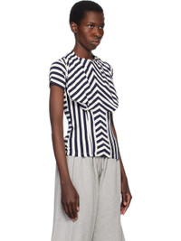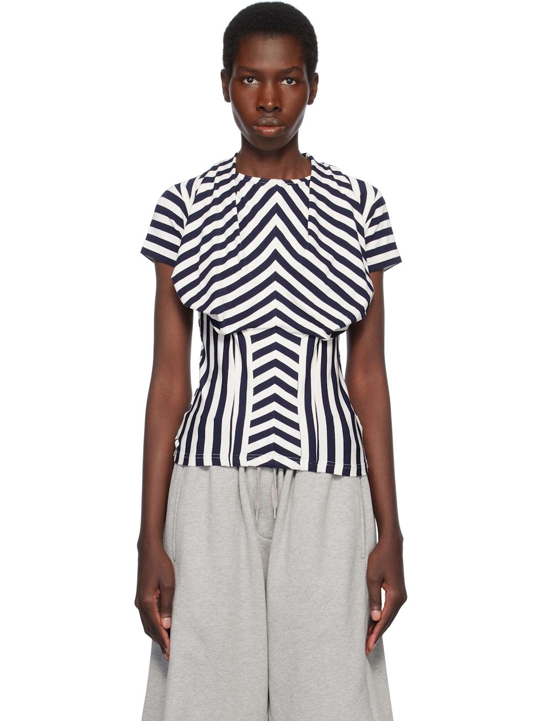 Navy & White Stripe Bra Draping Jersey T-shirt