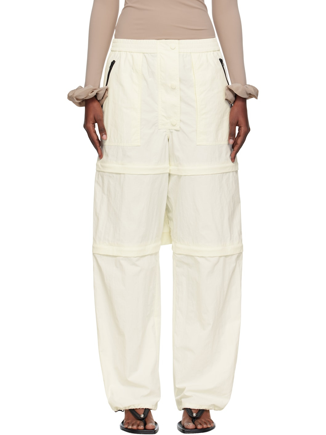 Nylon taffeta trousers. · Elasticized waistband · Three-pocket styling · Zip fly · Text and logo printed at front leg · Detachable zip panels at legs for shorts styling · Bungee-style drawstring at cuffs Supplier color: Iv 100% nylon. Made in South Korea 252252F087008