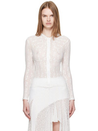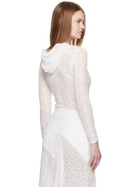 Stretch nylon lace hoodie. · Floral pattern throughout · Sheer · Two-way zip closure Supplier color: White 95% nylon, 5% spandex. Made in South Korea 252252F097004