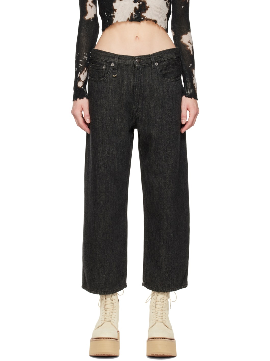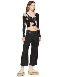 Wide-leg non-stretch brushed nep denim jeans. · Belt loops · Five-pocket styling · Zip-fly · Cropped cuffs · Textile logo patch at back waistband · Graphic embroidered at back pocket · Logo-engraved antiqued silver-tone hardware Supplier color: Koze rinsed black 100% cotton. Made in Italy 222021F069020