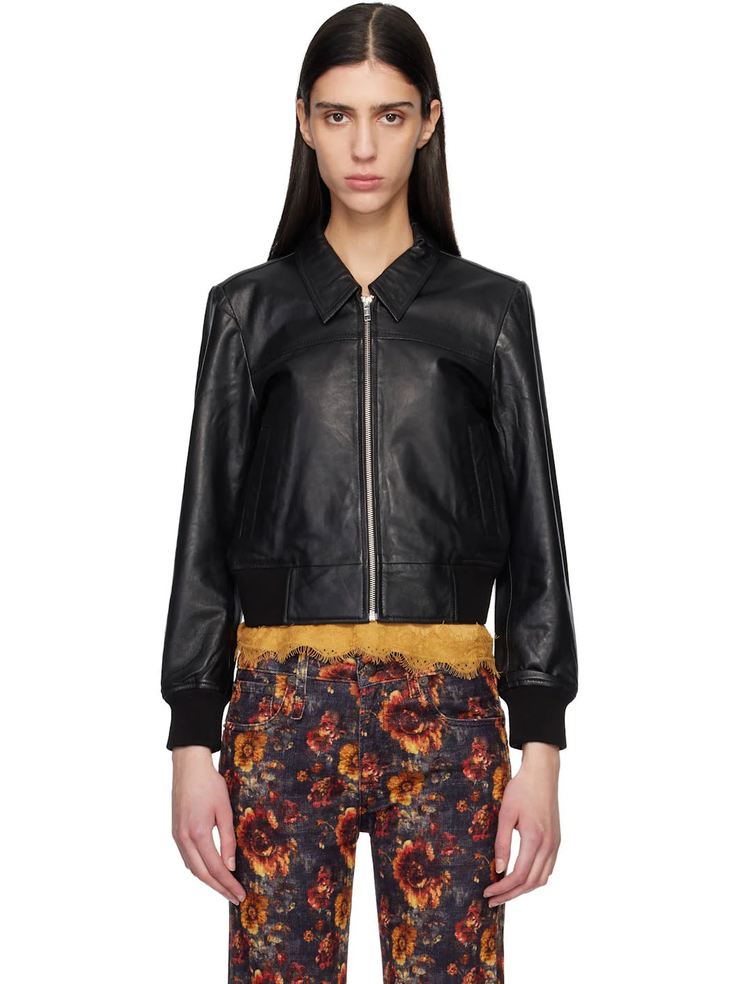 Buffed lambskin jacket. · Spread collar · Zip closure · Welt pockets at waist · Rib-knit cropped hem and cuffs Supplier color: Black 100% lambskin. Made in India 261021F064000