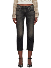 Slim-fit and straight-leg stretch denim jeans. Fading, whiskering, and subtle distressing throughout. · Low-rise · Belt loops · Five-pocket styling · Zip fly · Cropped leg · Leather logo patch at back waistband · Logo-engraved antiqued copper-tone hardware Supplier color: Abbey black 92% cotton, 8% elastomultiester. Made in Italy 251021F069025