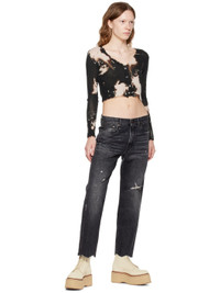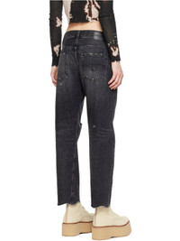 Non-stretch denim jeans. Fading, whiskering, and distressing throughout. · Belt loops · Five-pocket styling · Zip-fly · Raw edge at cuffs · Textile logo patch at back waistband · Graphic embroidered at back pocket · Logo-engraved gunmetal-tone hardware Supplier color: Everit black 100% cotton. Made in Italy 222021F069025