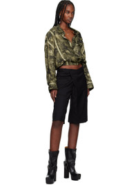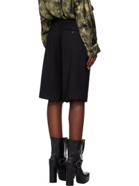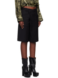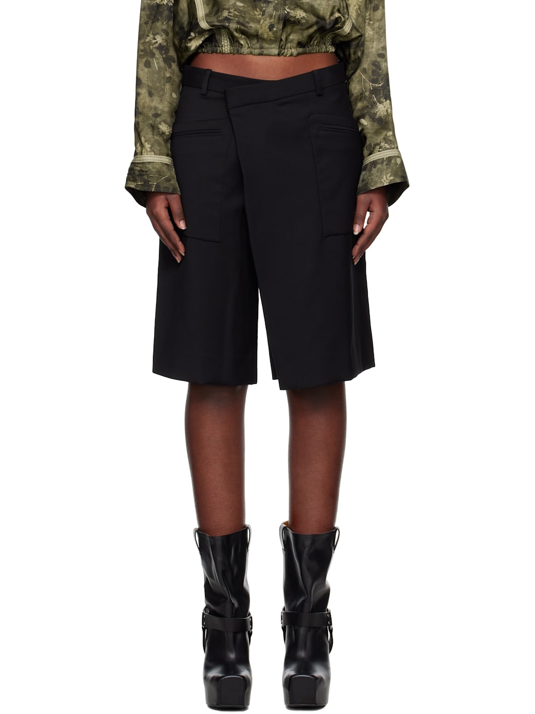 Plain-woven stretch polyester- and viscose-blend shorts. · Belt loops · Asymmetric waistband · Four-pocket styling Supplier color: Black Body: 67% polyester, 31% viscose, 2% polyurethane. Lining: 50% polyester, 50% viscose. Made in United States 251021F088000