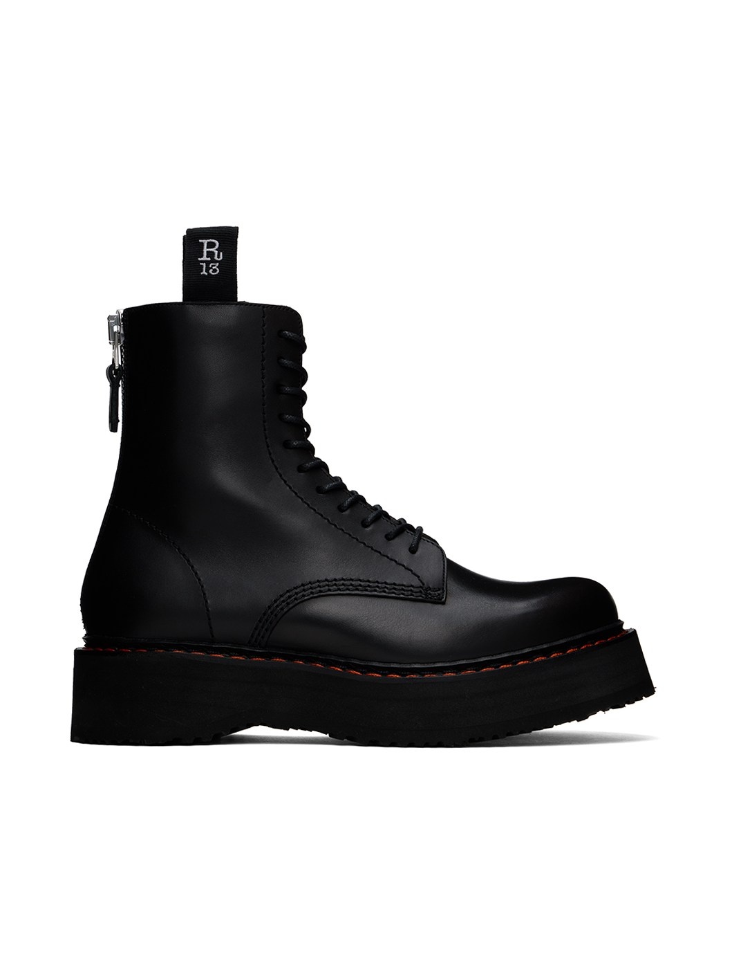 Handcrafted ankle-high buffed leather boots in black. · Lace-up closure · Logo-embroidered pull-loops at collar · Zip closure at heel · Buffed leather lining · Topstitching at welt · Treaded foam rubber platform sole · Platform: H1.5" Supplier color: Black Upper: leather. Sole: rubber. Made in Italy 242021F113005