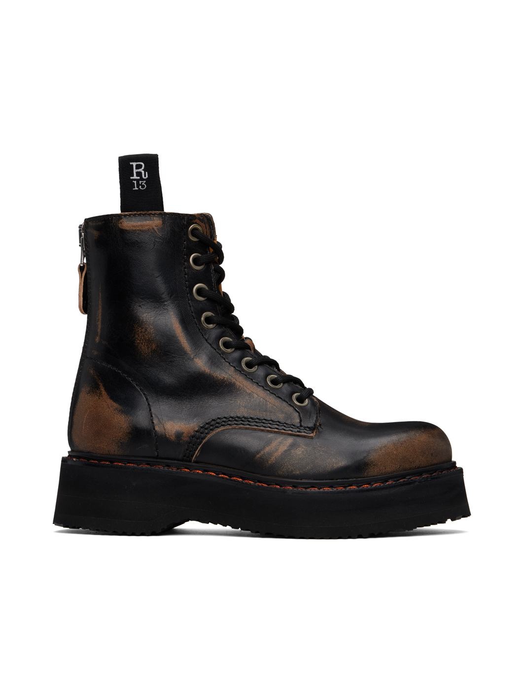 Handcrafted ankle-high buffed leather boots in black. · Fading and distressing throughout · Lace-up closure · Logo-embroidered pull-loops at collar · Zip closure at heel · Grained leather lining · Topstitching at welt · Foam rubber platform midsole · Treaded Vibram® rubber sole · Platform: H1.75" Supplier color: Remove Upper: leather. Sole: rubber. Made in Italy 242021F113003
