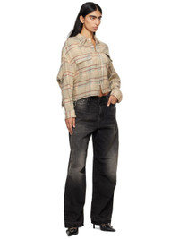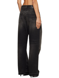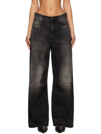Wide-leg non-stretch denim jeans. Fading, whiskering, and distressing throughout. · Belt loops · Five-pocket styling · Zip-fly · Pleats at front · Darts at knees · Leather logo patch at back waistband · Logo-engraved antiqued copper-tone hardware · Contrast stitching in tan Supplier color: Alton black Body: 100% cotton. Lining: 65% polyester, 35% cotton. Made in Italy 242021F069049
