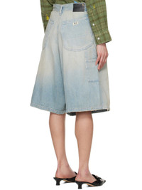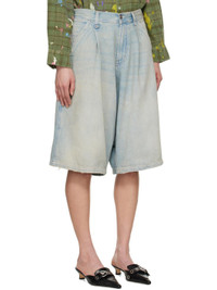 Non-stretch denim shorts. Fading, whiskering, and subtle distressing throughout. · Belt loops · Five-pocket styling · Zip fly · Pleats at front · Hammer loop at outseam · Patch pockets at outseam · Leather logo patch at back waistband · Logo patch at back pocket · Logo-engraved antiqued bronze-tone hardware · Contrast stitching in tan Supplier color: Toni blue Body: 100% cotton. Lining: 65% polyester, 35% cotton. Made in Italy 251021F088016