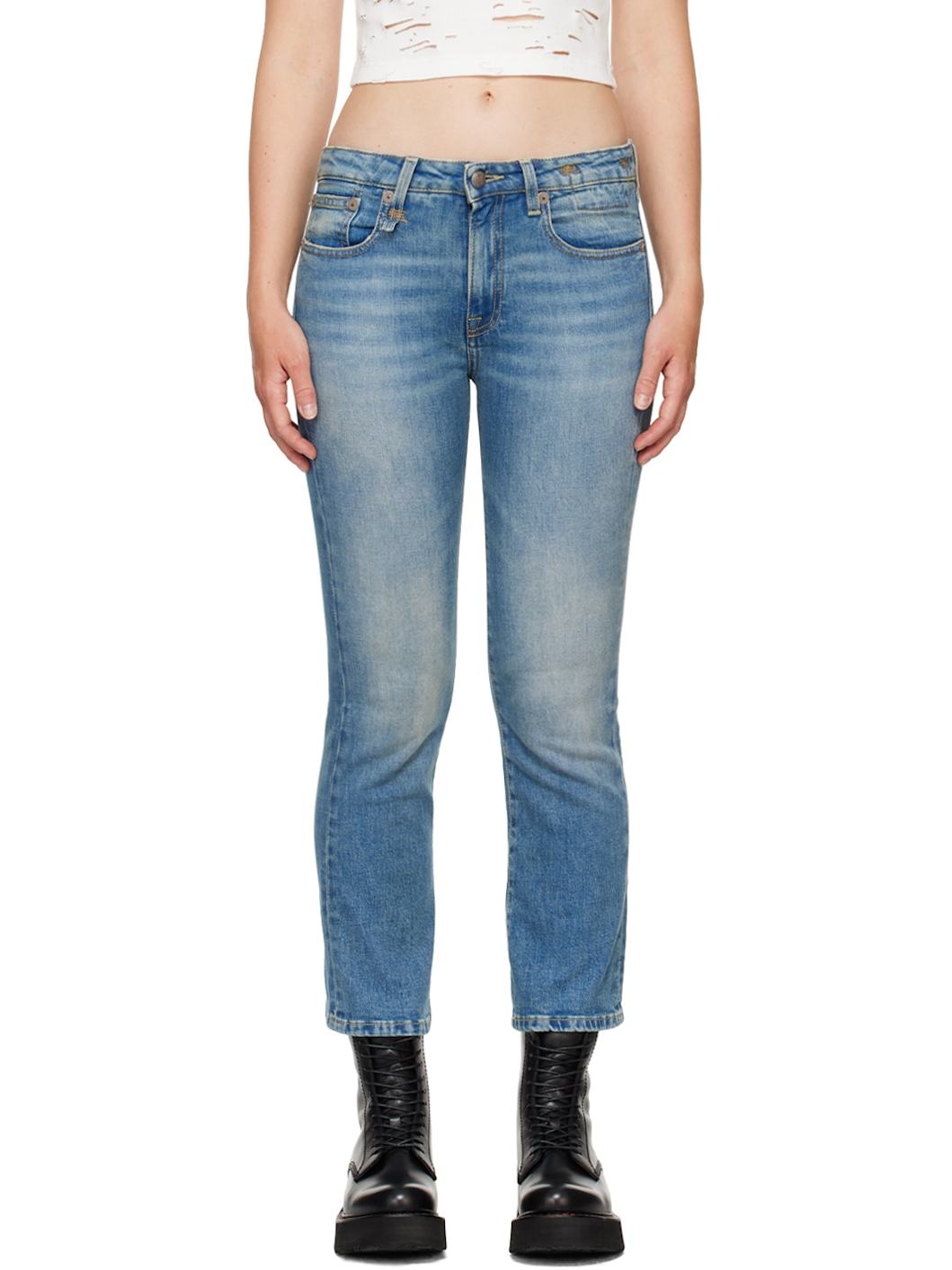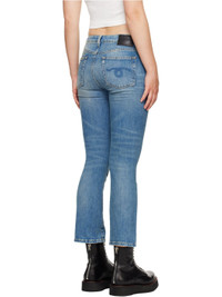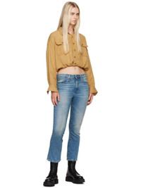 Flared stretch denim jeans. Fading and whiskering throughout. · Belt loops · Five-pocket styling · Zip-fly · Cropped leg · Leather logo patch at back waistband · Logo-engraved antiqued copper-tone hardware · Contrast stitching in yellow Supplier color: Jasper stretch 98% cotton, 2% elastane. Made in Italy 242021F069018