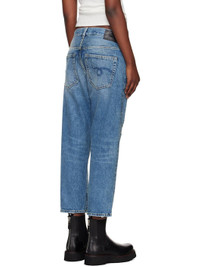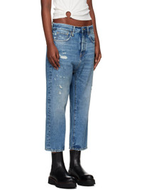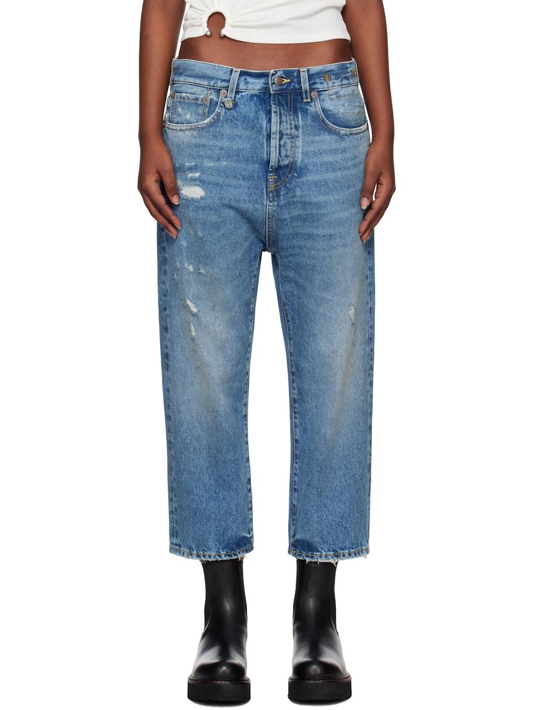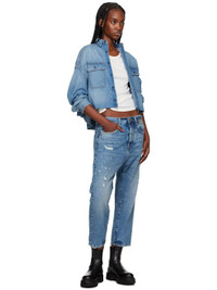Relaxed-fit straight-leg non-stretch denim jeans. Fading, whiskering, and distressing throughout. · Belt loops · Five-pocket styling · Button fly · Dropped inseam · Leather logo patch at back waistband · Logo-engraved antiqued copper-tone hardware · Contrast stitching in tan Supplier color: Bain 100% cotton. Made in Italy 251021F069028