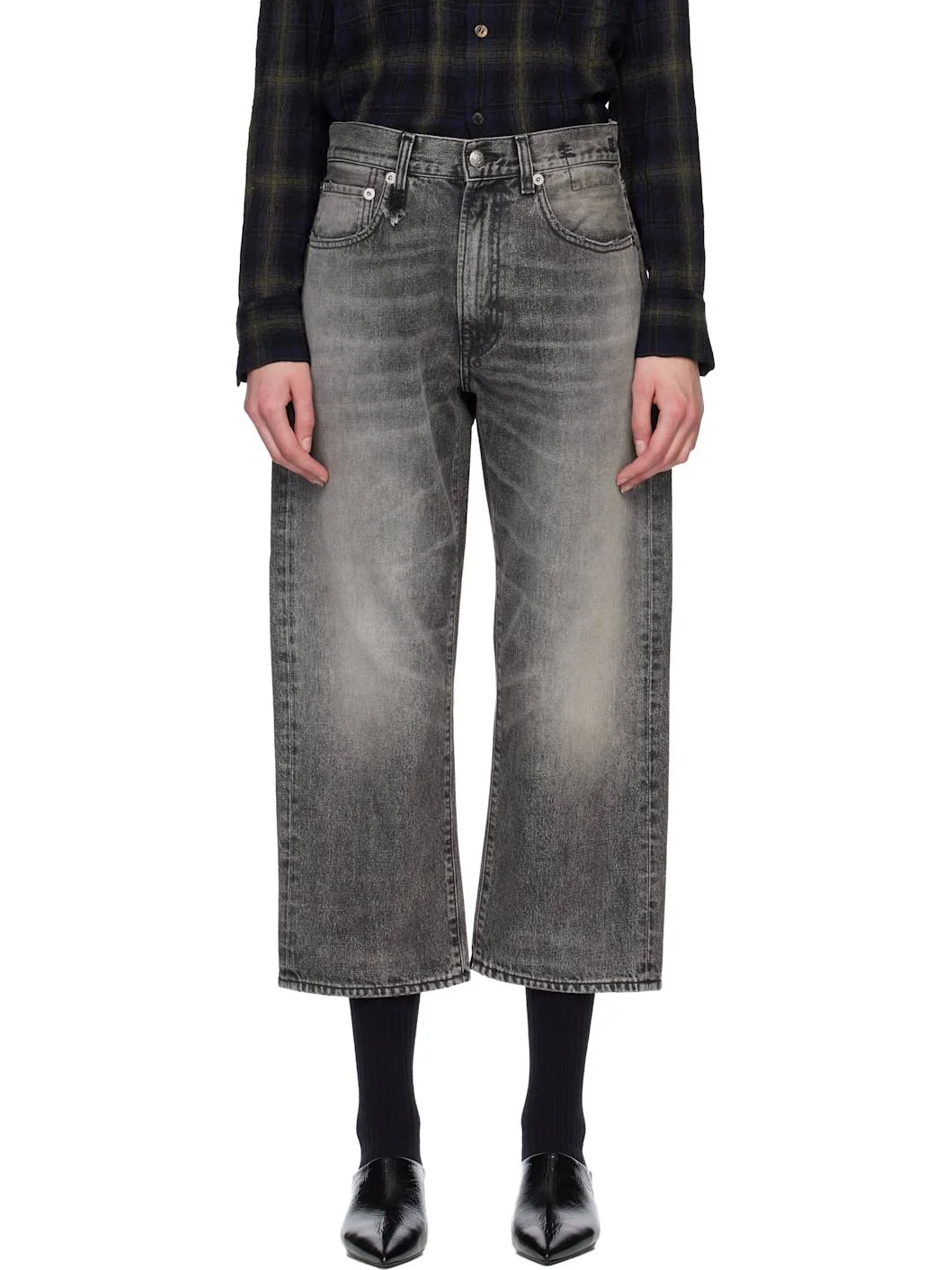 12.5 oz non-stretch denim jeans. · Fading and whiskering throughout · Wide-leg · Belt loops · Five-pocket styling · Zip fly · Cropped leg · Leather logo patch at back waistband · Logo-engraved silver-tone hardware · Contrast stitching in black Supplier color: Polaris black 100% cotton. Made in Italy 261021F069007