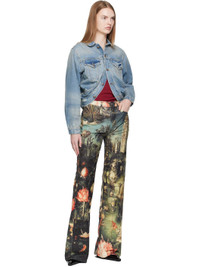 Flocked stretch denim jeans. · Graphics printed throughout · Flared · Belt loops · Five-pocket styling · Zip fly · Creased legs · Leather logo patch at back waistband · Logo-engraved antiqued copper-tone hardware Supplier color: Eden velveteen Body: 98% cotton, 2% elastane. Trim: 100% leather. Pocket lining: 65% polyester, 35% cotton. Made in Italy 252021F069030
