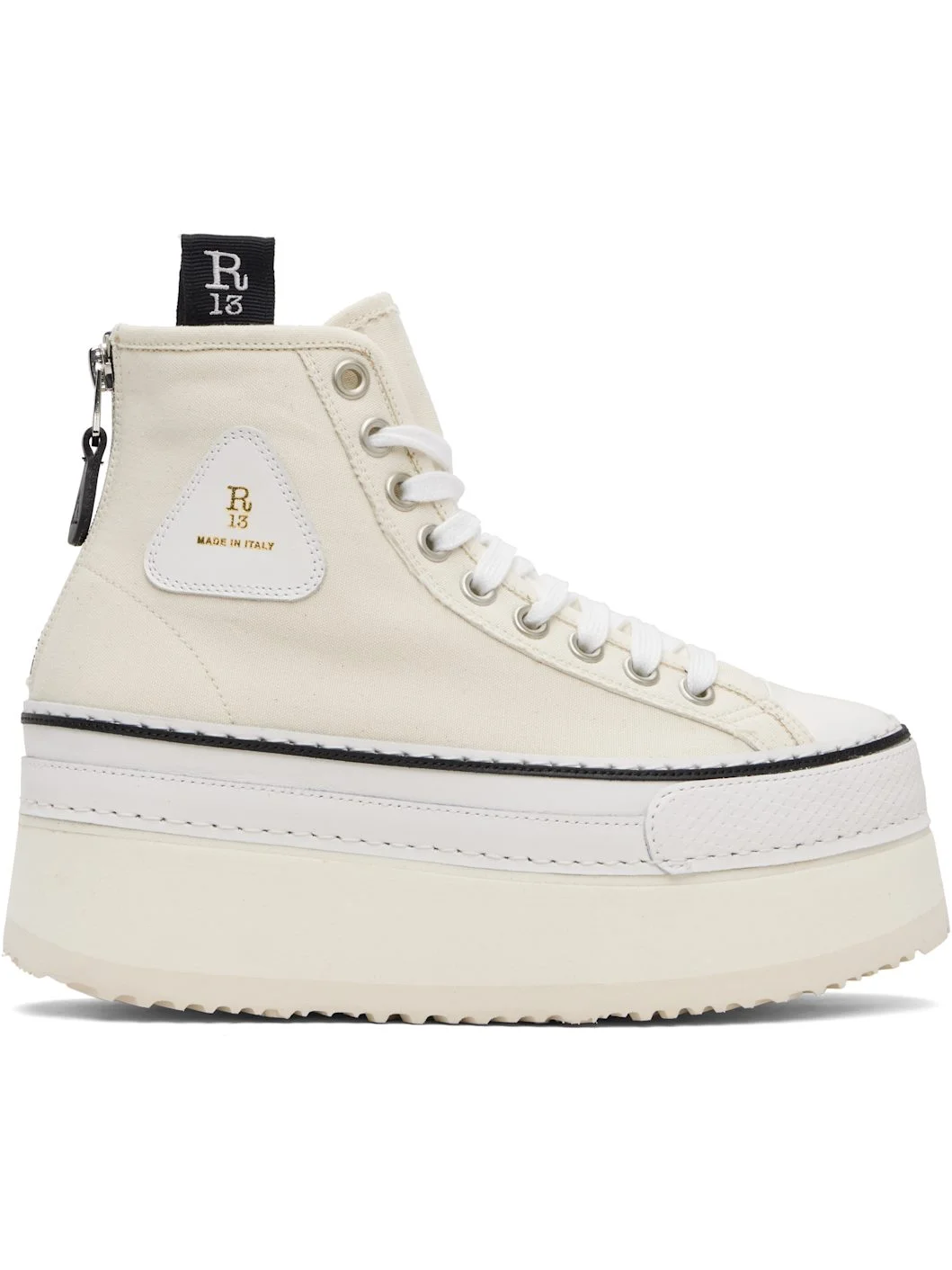 High-top canvas sneakers. · Rubber cap toe · Lace-up closure · Zip closure at heel · Logo-embroidered pull-loops at collar · Logo patch at outer side · Canvas lining · Stacked foam platform midsole · Treaded Vibram® rubber sole · Platform: H2.5" Supplier color: Ecru Upper: textile. Sole: rubber. Made in Italy 261021F127002