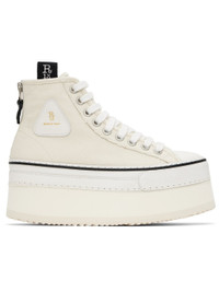High-top cotton canvas sneakers in off-white. · Leather cap toe · Lace-up closure · Logo-embroidered pull-loops at collar · Leather logo patch at outer side · Zip closure at heel · Hand-stitched platform rubber midsole · Treaded Vibram® rubber sole · Platform: H2.5" Supplier color: Ecru Upper: textile, leather. Sole: rubber. Made in Italy 251021F127009