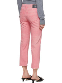 Slim-fit and straight-leg stretch denim jeans. Fading, whiskering, and subtle distressing throughout. · Low-rise · Belt loops · Five-pocket styling · Zip fly · Cropped leg · Leather logo patch at back waistband · Logo-engraved antiqued silver-tone hardware Supplier color: Coral stretch Body: 99% cotton, 1% elastane. Lining: 65% polyester, 35% cotton. Made in Italy 251021F069048