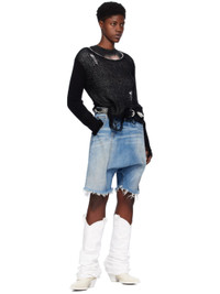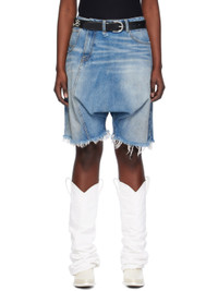 Non-stretch denim shorts. Fading, smudging, whiskering, and subtle distressing throughout. · Asymmetrical construction · Belt loops · Offset zip-fly · Five-pocket styling · Raw edge at cuffs Available exclusively at SSENSE. Supplier color: Turner blue 100% cotton. Made in Italy 241021F088000