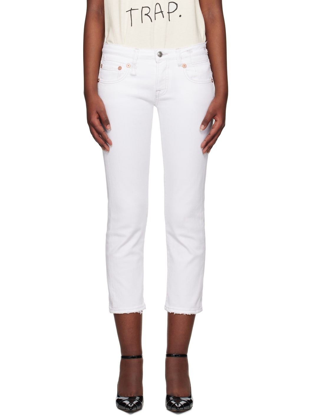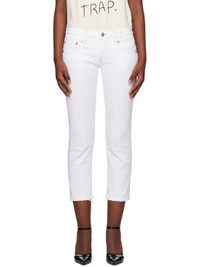 Slim-fit and straight-leg stretch denim jeans. Subtle distressing throughout. · Low-rise · Belt loops · Five-pocket styling · Zip fly · Cropped leg · Leather logo patch at back waistband · Logo-engraved antiqued silver-tone and copper hardware · Contrast stitching in gray Supplier color: Bale white 98% cotton, 2% elastane. Made in Italy 251021F069027