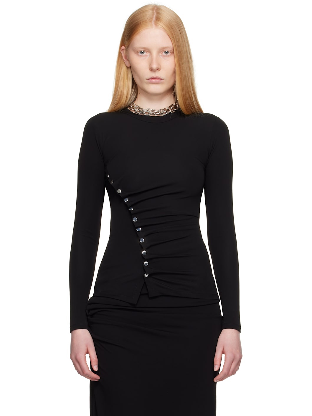 Stretch viscose jersey top. · Crewneck · Gathering at offset press-stud closure · Asymmetrical hem Supplier color: Black 95% viscose, 5% elastane. Made in Portugal 252605F110000
