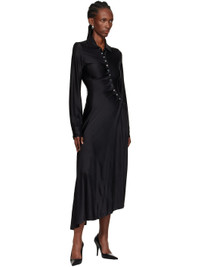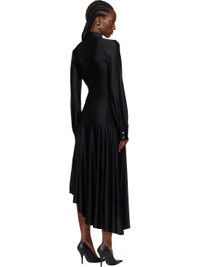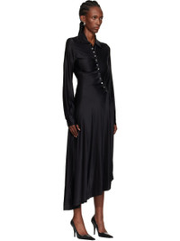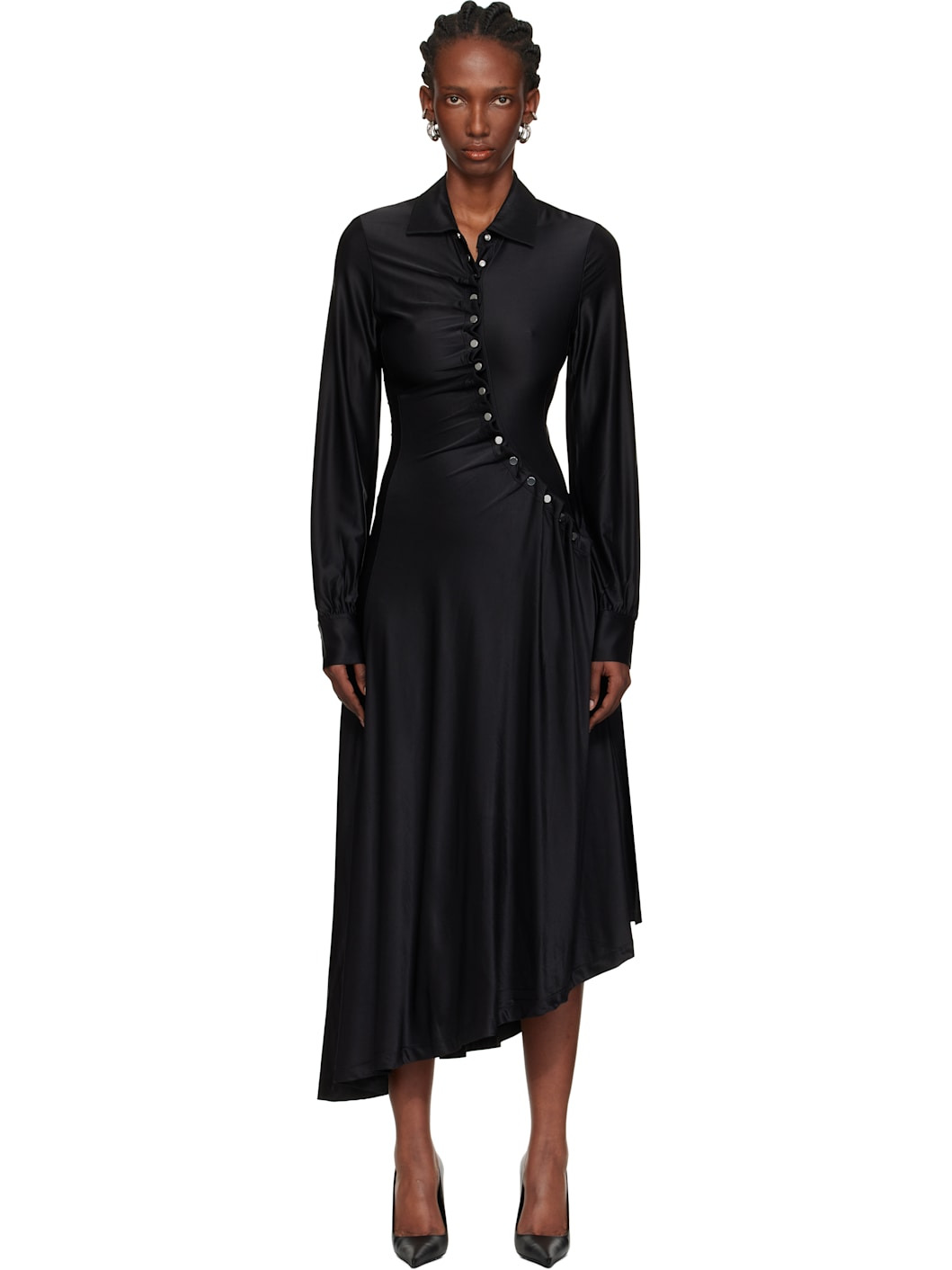 Stretch viscose jersey midi dress. · Spread collar · Offset press-stud closure · Draping at front · Press-stud barrel cuffs · Asymmetrical hem Supplier color: Black 90% viscose, 10% elastane. Made in Portugal 252605F054002
