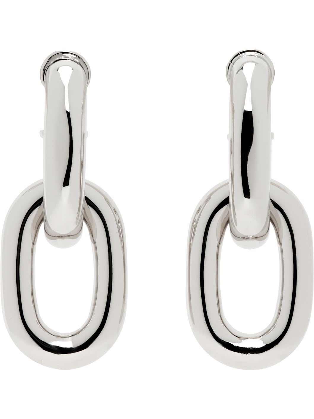 Pair of drop earrings in silver-tone brass. · Chain link at drop · Post-stud fastening · H2.25" x W0.75" Supplier color: Silver Brass. Made in Italy 252605F022002