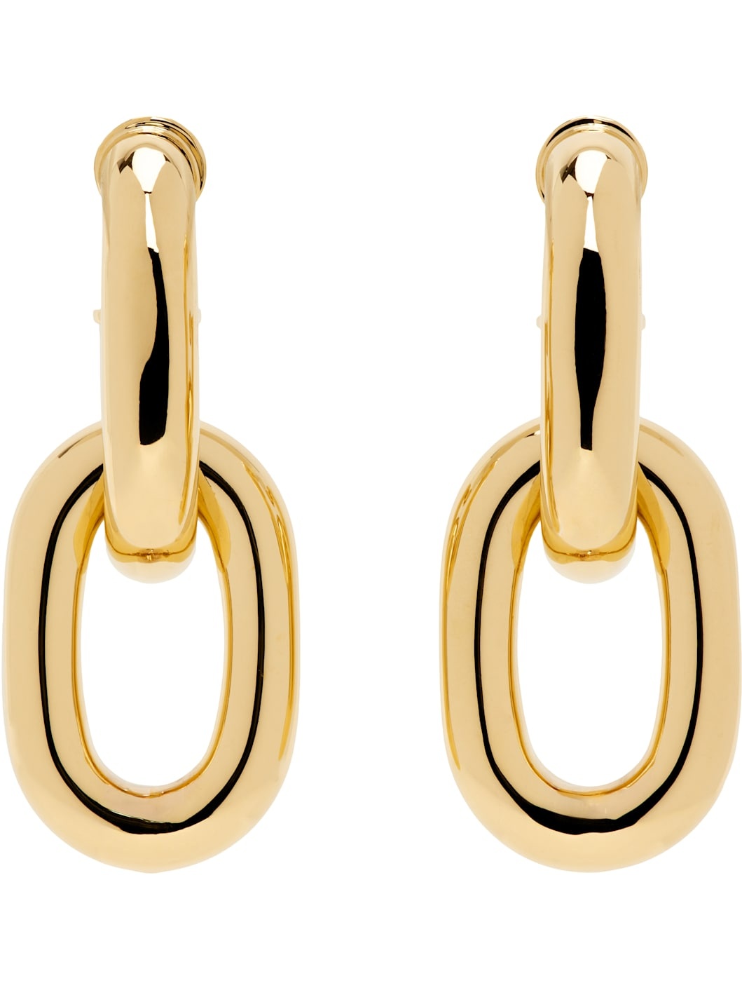 Pair of drop earrings in gold-tone brass. · Chain link at drop · Post-stud fastening · H2.25" x W0.75" Supplier color: Gold Brass. Made in Italy 252605F022000