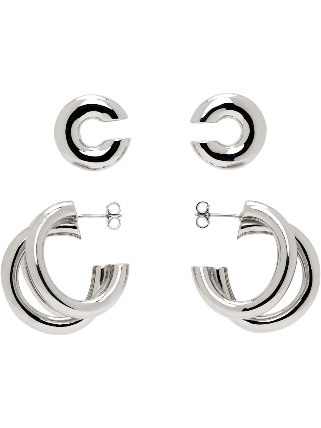 Set of open hoop earrings and ear cuffs in silver-tone brass. · Twisted detailing at open hoop · Post-stud fastening · Open hoop: D1" · Ear cuff: D0.5" Supplier color: Silver Brass. Made in Italy 252605F022007