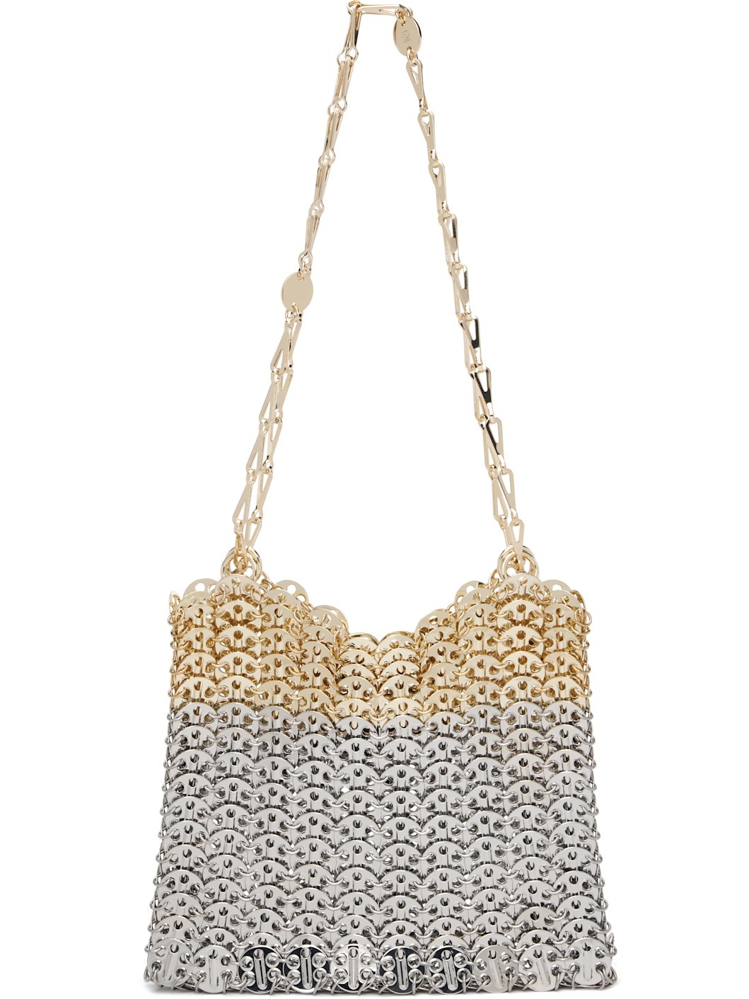 Handcrafted chain-mail-style shoulder bag in silver- and gold-tone brass. · Sliding chain-link shoulder straps · Logo plaque at shoulder strap · Open throat · Unlined · H7" x W9" x D1" Supplier color: Silver/Light gold Brass. Made in Madagascar 252605F048005