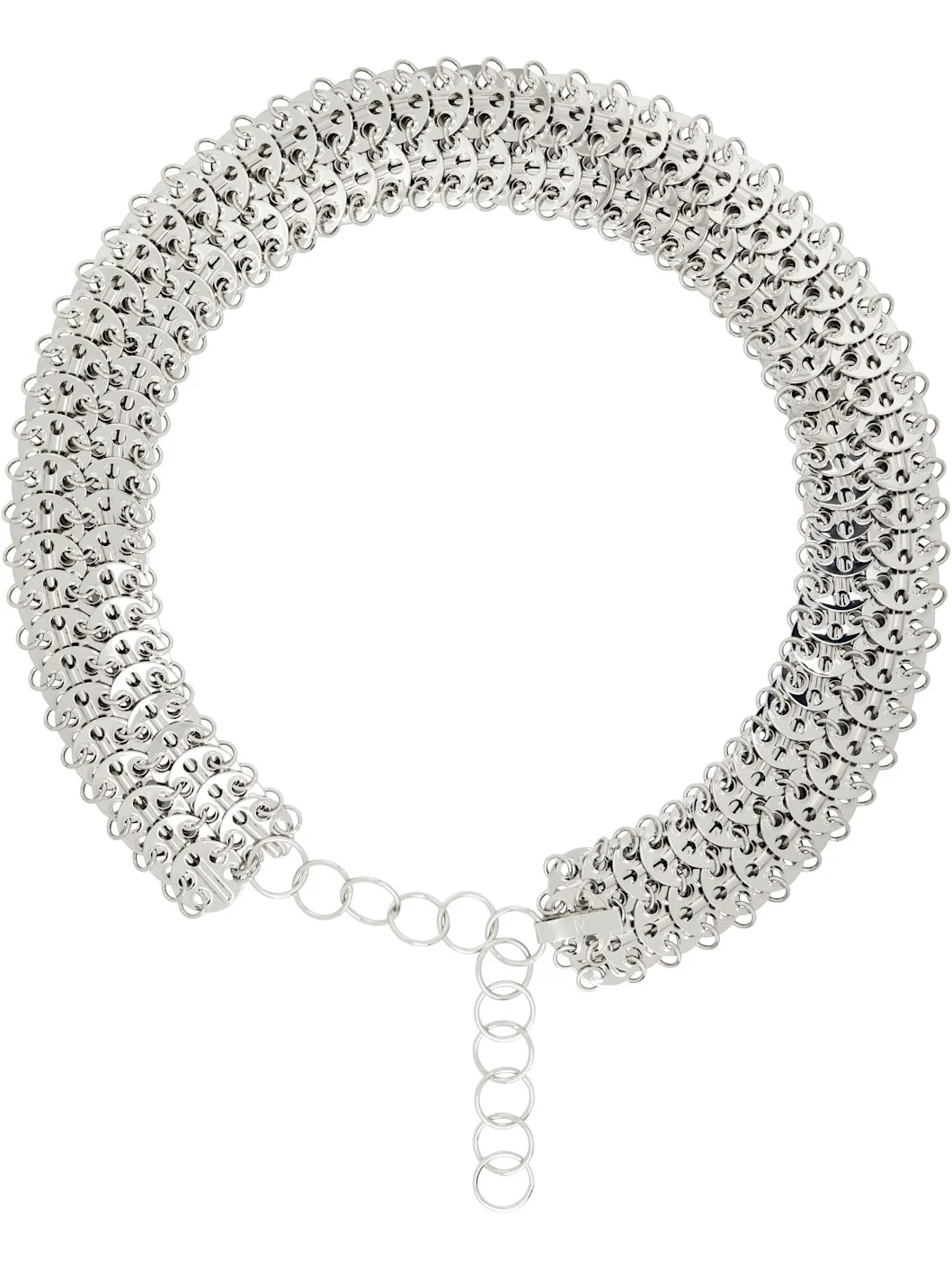 Chain-mail-style belt. · Solid brass discs · Logo-engraved adjustable hook-eye fastening · W2.25" Supplier color: Silver Brass. Made in France 261605F001000