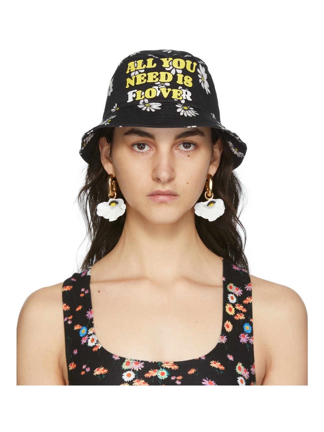 SSENSE Exclusive Black Daisy Bucket Hat