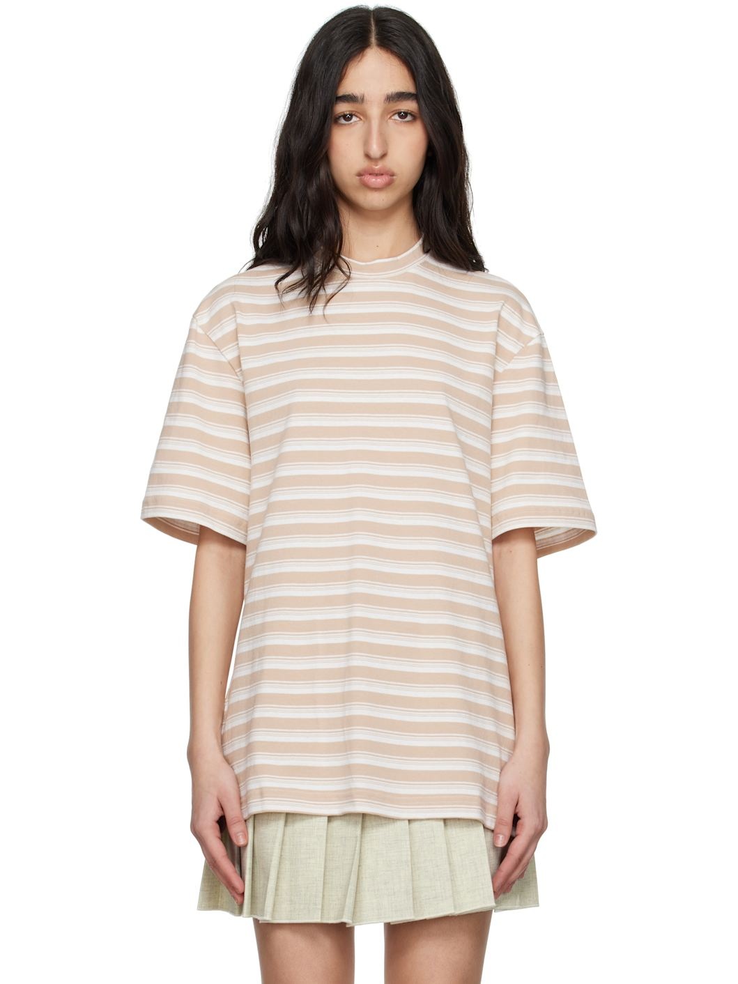 Cotton jersey T-shirt. Stripes throughout. · Rib-knit crewneck · Logo hardware at front hem and back collar · Vented side seams · Dropped shoulders Supplier color: Beige 100% cotton. Made in Portugal 251605F110007