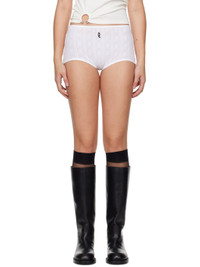 Pointelle-knit cotton shorts. Jacquard logo and scalloped edges throughout. · Rib-knit elasticized waistband and cuffs · Logo graphic hardware at front Supplier color: White 100% cotton. Made in Portugal 251605F088000