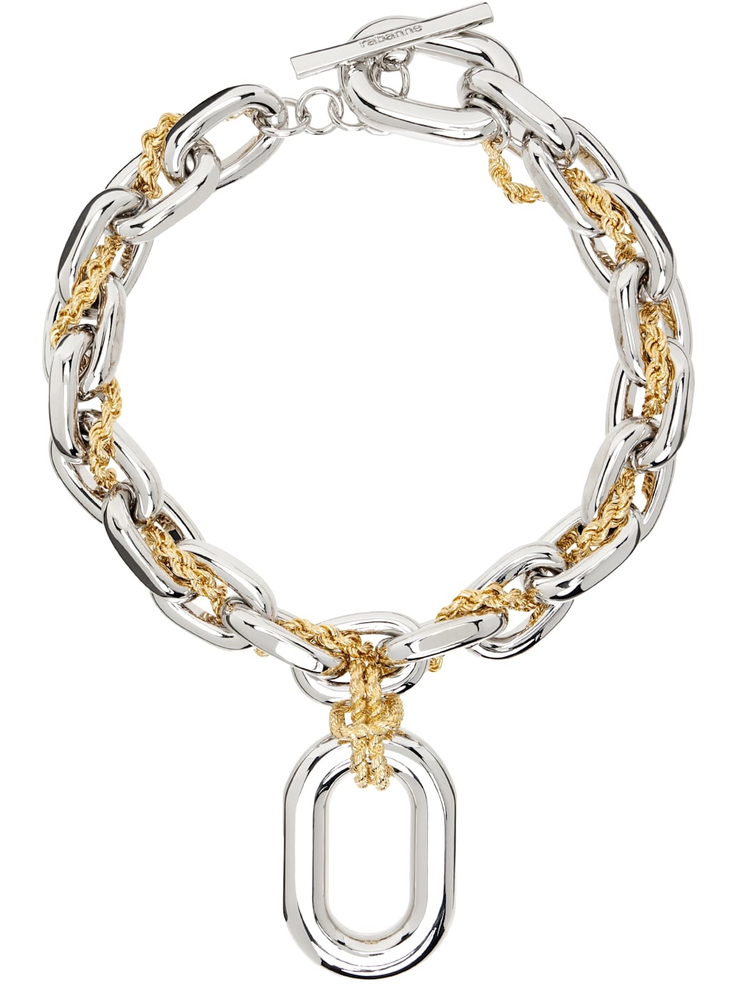 Cable chain necklace in silver-tone brass. · Rope chain detailing in gold tone throughout · Pendant at drop · Logo-engraved toggle fastening · L19.5" Supplier color: Silver/Gold Brass. Made in Italy 252605F023006