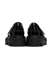 Handcrafted crinkled patent leather loafers in black. · Moc toe · Strap with cutout at vamp · Pinched seam and stitch detailing at heel counter · Antimicrobial cushioned OrthoLite® Lazy™ insole · Buffed leather and suede lining · Serrated edge at welt · Textured rubber platform midsole · Lugged rubber sole · Platform: H1.75" Supplier color: Black patent Upper: leather. Sole: rubber. Made in Viet Nam 242055F121006