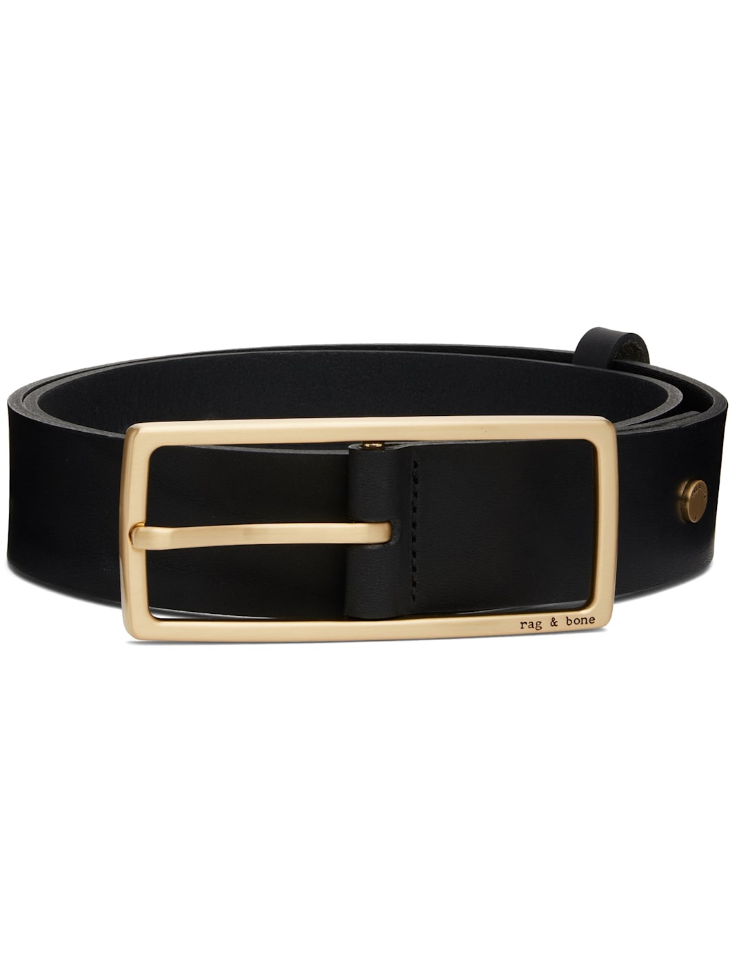 Buffed leather belt in black. · Pin-buckle fastening · Logo-engraved gold-tone hardware · W1.25" Supplier color: Black Leather. Made in United Kingdom 252055F001000