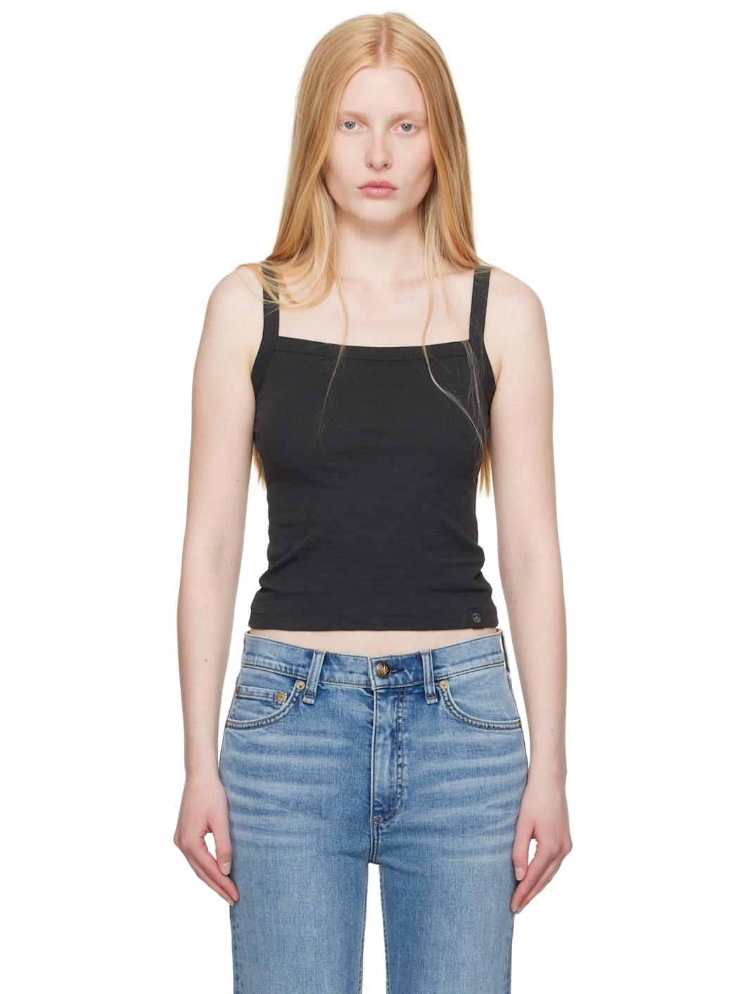 Slub pima cotton jersey tank top. · Square neck · Logo flag at front hem · Fixed shoulder straps Supplier color: Black 100% pima cotton. Made in Peru 252055F111008