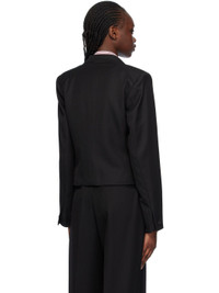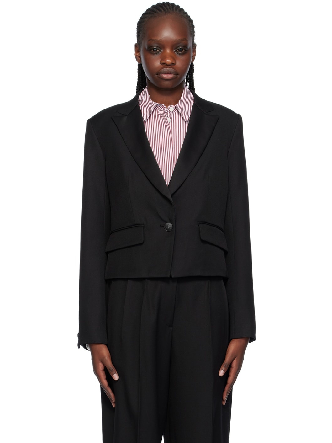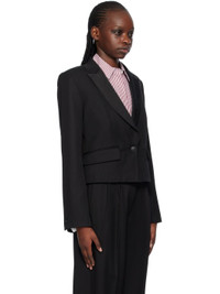 Virgin wool twill blazer. · Satin trim at peaked lapel · Single-button closure · Flap pockets · Cropped hem · Padded shoulders · Single-button surgeon's cuffs · Welt pocket at interior · Full satin lining Supplier color: Black