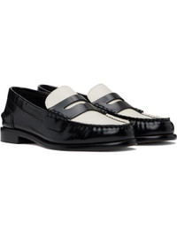 Polished leather loafers in black and white. · Moc toe · Strap with cutout at vamp · Pinched seam at heel counter · Logo-embossed padded OrthoLite® footbed · Stacked leather heel with rubber injection · Leather sole Supplier color: Black/White