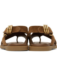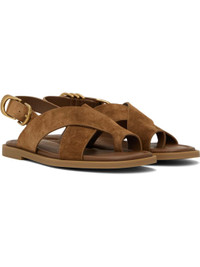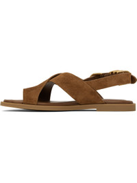 Suede flat sandals in brown. · LWG-certified · Open toe · Crisscrossing straps with integrated toe strap · D-rings at pin-buckle ankle strap · OrthoLite® Lazy-Hybrid™ and OrthoLite® Recycled footbed · Rubber sole Supplier color: Umber suede Upper: leather. Sole: rubber. Made in Viet Nam 251055F124002