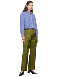 Relaxed-fit straight-leg cotton- and rayon-blend satin trousers. · Belt loops · Four-pocket styling · Zip-fly · Cargo pockets at outseams Supplier color: Army green Body: 58% cotton, 42% rayon. Lining: 60% polyester, 40% cotton. Made in Viet Nam 241055F087006