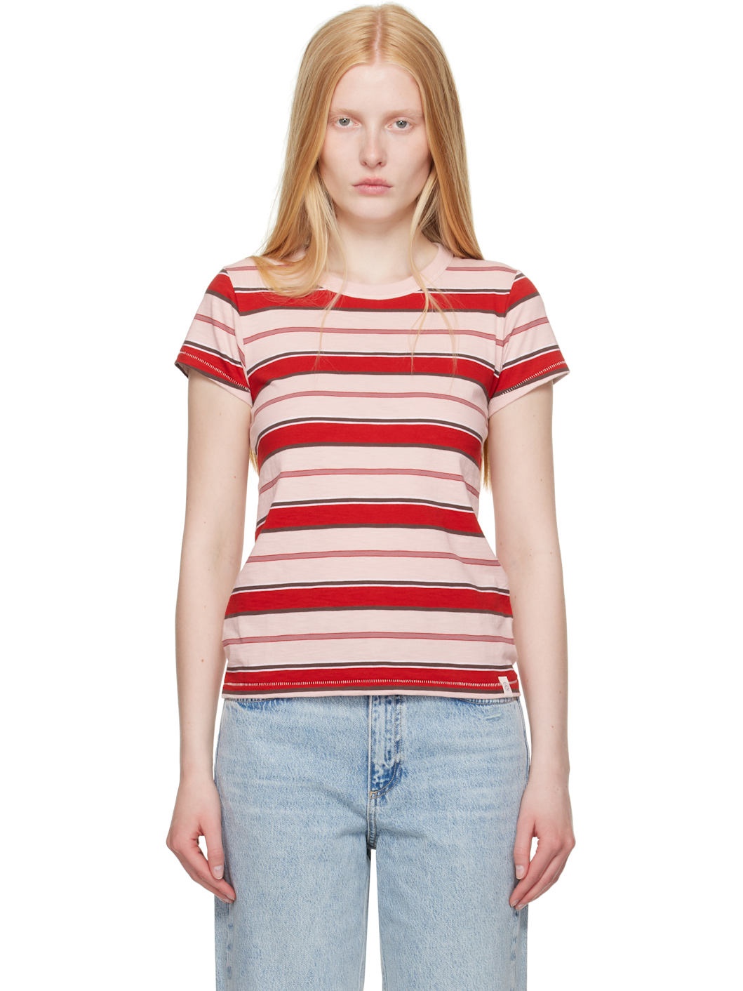 Slub pima cotton jersey T-shirt. Striped throughout. · Rib-knit crewneck · Logo flag at front hem · Contrast stitching in white Supplier color: Pnkmt 100% pima cotton. Made in Peru 252055F110009
