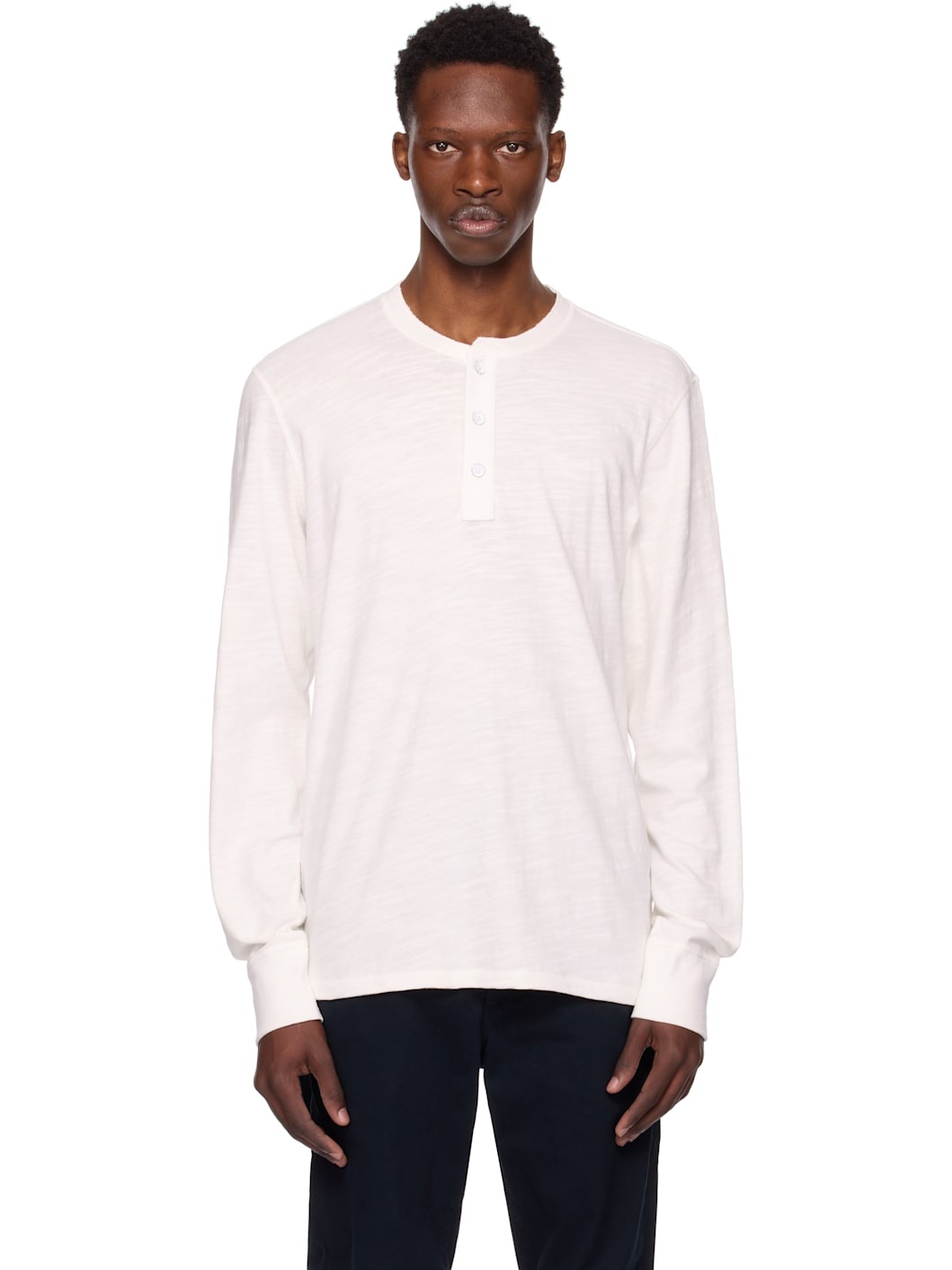 Slub Tangϋis cotton jersey henley. · Raw edge at rib-knit crewneck · Three-button placket Supplier color: White 100% cotton. Made in Peru 252055M211000