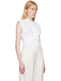 Cotton poplin shirt. · Band collar · Button closure · Twisted accent at front · Zip vent at side seam Supplier color: White 100% cotton. Made in Viet Nam 242055F107000